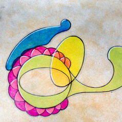 Desenvolve sua obra partindo da reprodução de elementos geométricos - cria volumes, explora sobreposições, abusa das cores vibrantes e sobrecarrega transparências, dando vida a novas formas e tons.